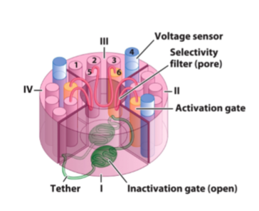the inactivation gate is a small soluble domain (green) that connects domains III and IV