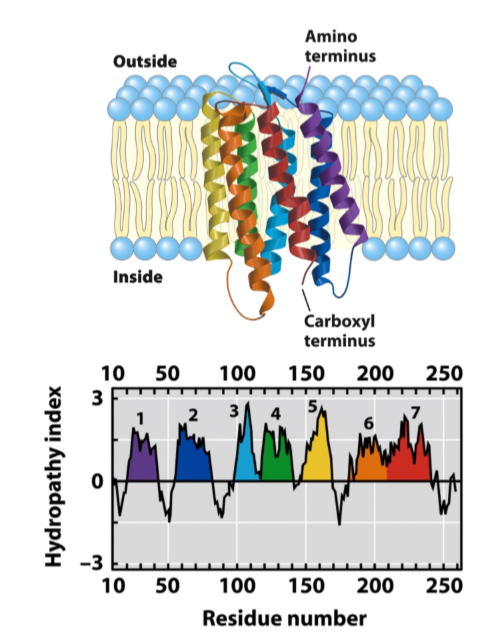 if >20 successive residues have a high hydropathy index, possibly a transmembrane segment