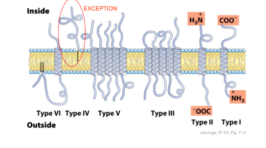 - hydrophobic side chains oriented towards hydrophobic lipid tails
