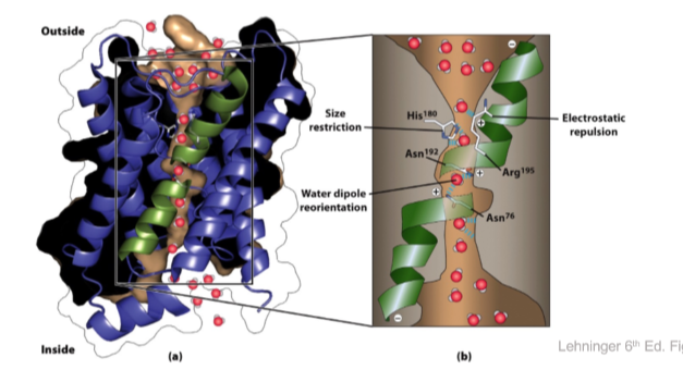 - hydrophilic side chains oriented towards aqueous environment of the pore