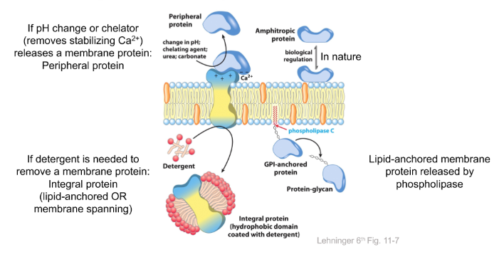 pH or chelator releases a membrane protein = PERIPHERAL