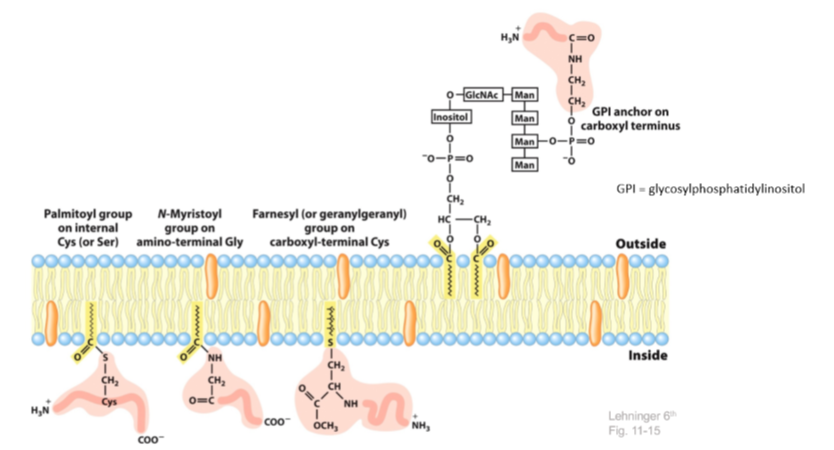 - Palmitoylaiton = addition of a palmitoy group on the cys or ser