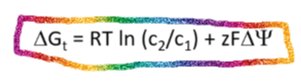 Free energy of charged species is different on each side of membrane