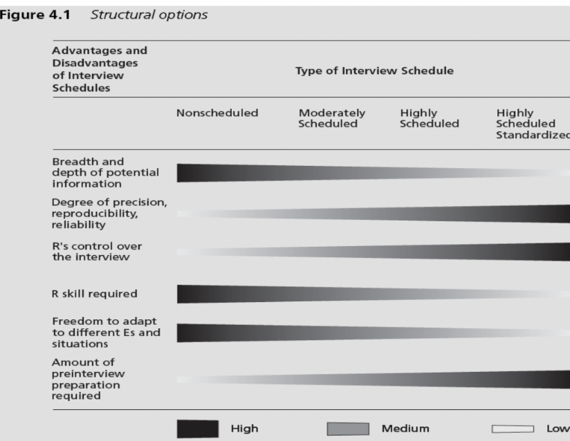 Affect interviewer control, required interviewee skill, adaptation freedom, and prep time