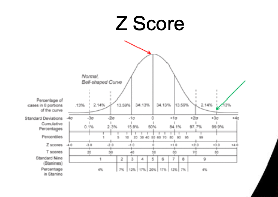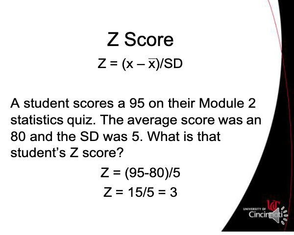 Z score: Z = \frac{95 - 80}{5} = \frac{15}{5} = 3