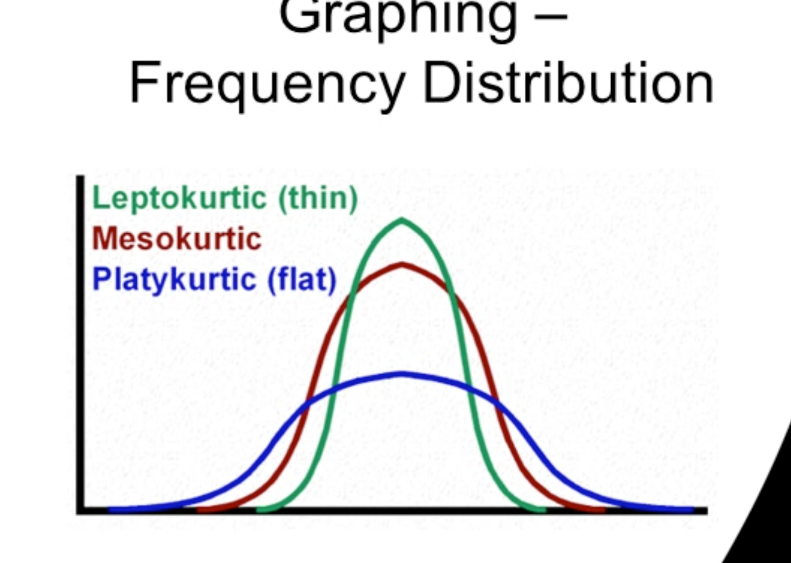 Platykurtic: negative kurtosis; distribution is flatter than normal.