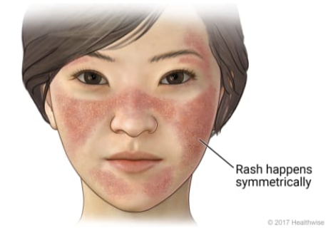 butterfly rash across nose and cheeks
