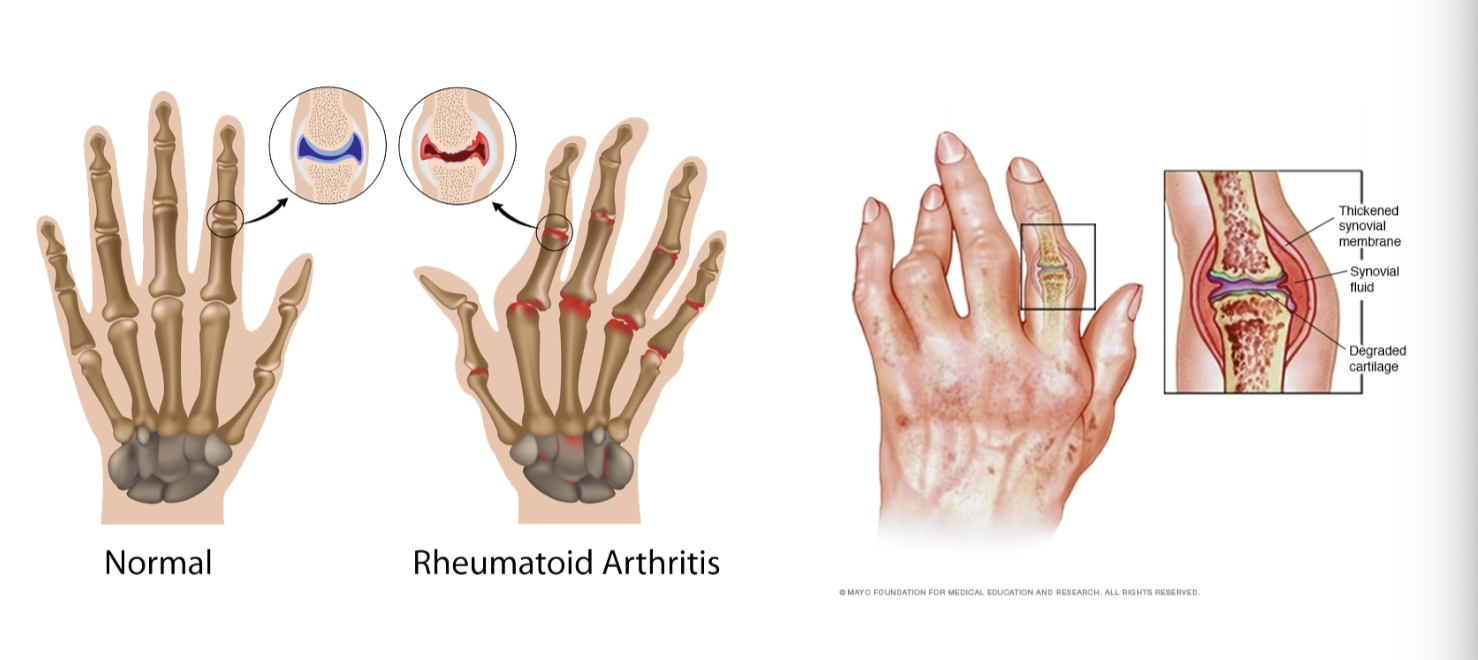 RA is an auto-immune disease in which the body’s immune system (the body’s way of of fighting infection) attacks healthy joints, tissues, and organs- heart, lungs, gastrointestinal system.