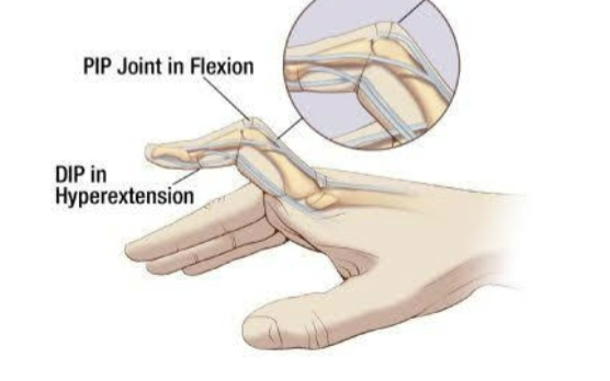 Swan neck- PIP hyperextension, DIP flexion