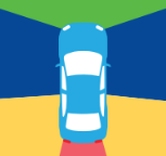 ahead of you (green), next to you (blue), blind spots (yellow), and behind you (red).
