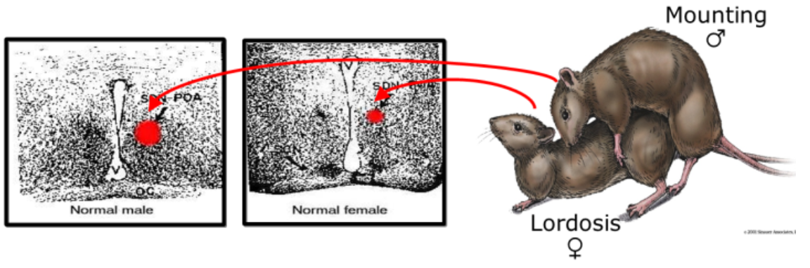 Systematic differences in male & female (sexual) behaviour suggest systematic differences between males’ & females’ brains (specifically: in those parts controlling sexual behaviour)
