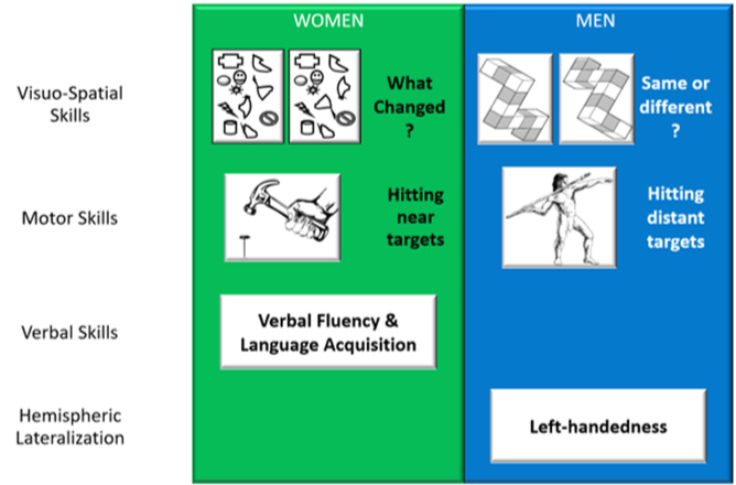 Superior visuo-spatial skills in men (e.g., mental rotation)