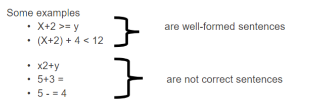 Example: 7 plus 3 plus 5 equals 2 x minus 3 is not well formed