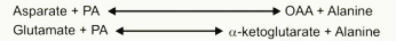 The reaction is catalyzed by amino transferases which require pyridoxal phosphate (PLP), a derivative of vitamin B6 as a prosthetic group. Its the carrier at the active site