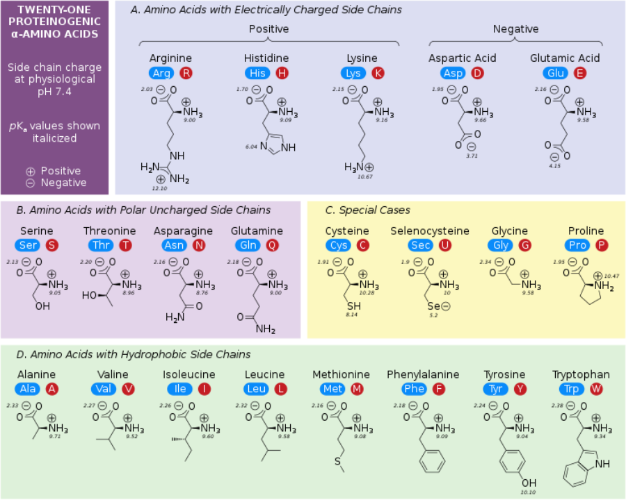 Amino Acid | 3-Letter | 1-Letter | Side Chain Property |