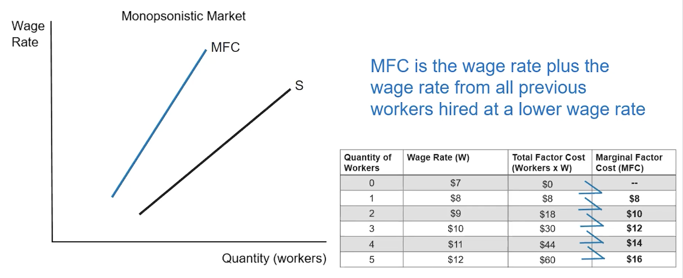 MFC = wage rate of ALL workers (wages of previous workers get raised to match the additional one)