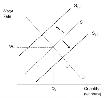 wage: intersection of supply and profit maximizing line (Q of workers)