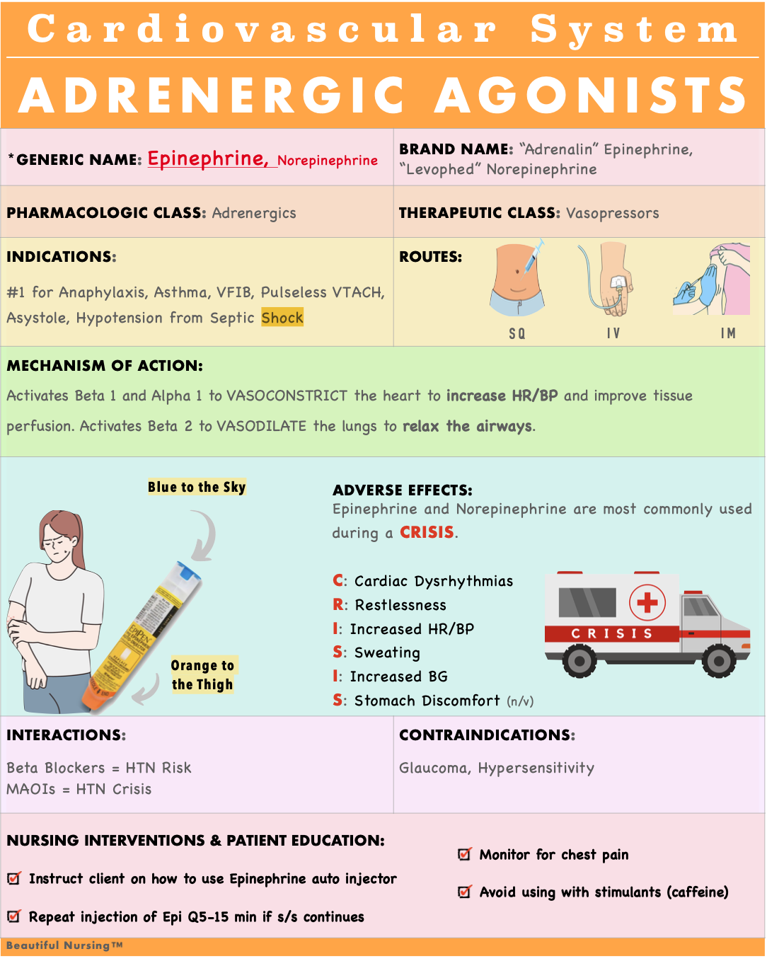 Epinephrine: Emergency drug of choice during anaphylaxis.