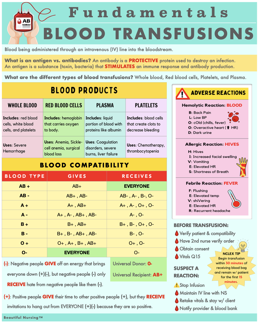 Recognize signs of allergic reactions or circulatory overload (e.g., shortness of breath, edema).