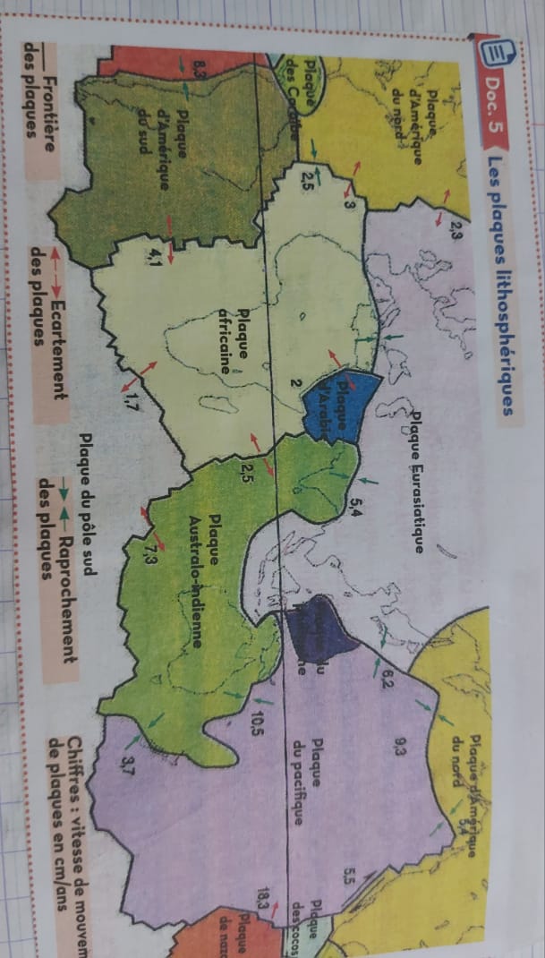 Plaque lithosphérique est un fragment relativement stable délimité par des zones instables qui se caractérise par une intense activité sismique et volcanique ou on distingue deux types de plaque plaque océan continental exemple plaque africaine plaque d'Amérique du Sud plaque océanique plaque de Nazca plaque Pacifique.