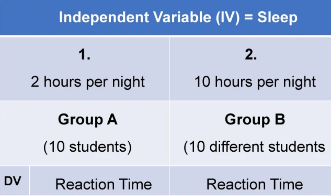 independent measures design, also known as between-groups, are when different groups of individuals are used in each condition of the independent variable.