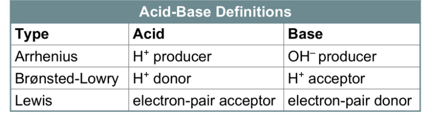 Lewis Acids and Bases - acid accepts pair of electrons while a base donates a pair.