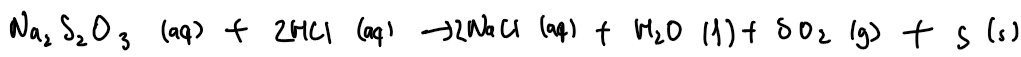 Na₂S₂O₃(aq) + 2HCl(aq) → 2NaCl(aq) + S(s) + H₂O(l) + SO₂(g)