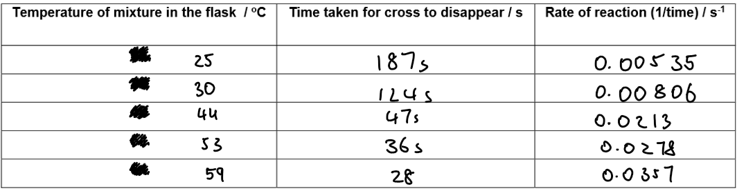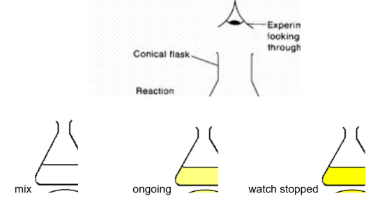 • Rate measured by timing how long it takes for a black cross beneath the flask to disappear.