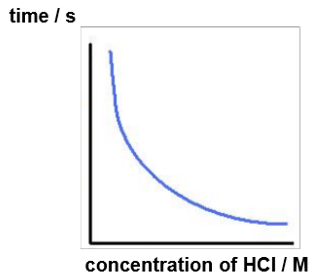 Sketch a graph of the time taken for the magnesium to react versus the concentration of the hydrochloric acid.
