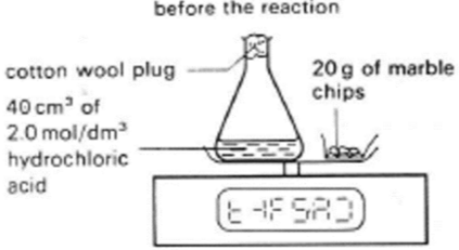 The rate of a reaction that produces a gas can be measured by following the mass loss on a top pan balance as the gas is formed and escapes from the reaction flask. This method is not suitable for reactions producing H2 as its mass is too small to accurately record.