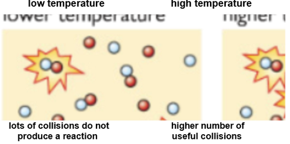 • According to collision theory, more collisions per second with sufficient energy lead to a faster reaction.