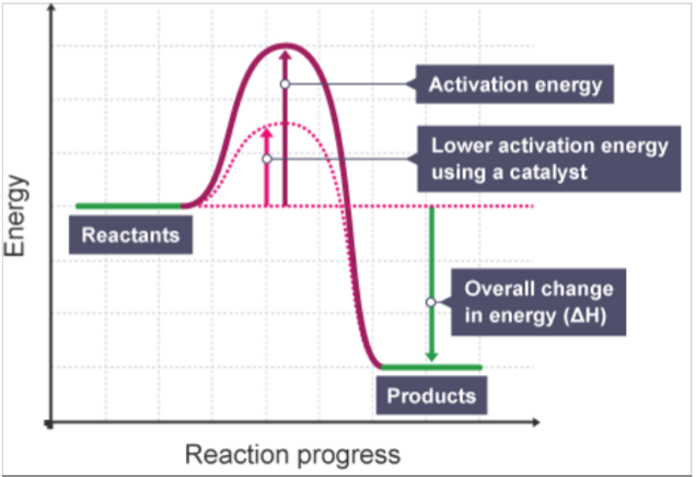 Catalyst – Speeds up reaction by lowering activation energy without being used up.