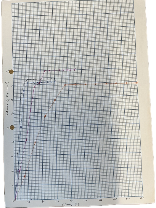 Sketch a graph of volume of carbon dioxide produced versus time.