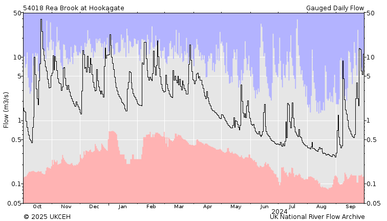 This means water takes longer to reach the channel from the furthest peripheries, resulting in a slower flow of water than in the Reabrook.