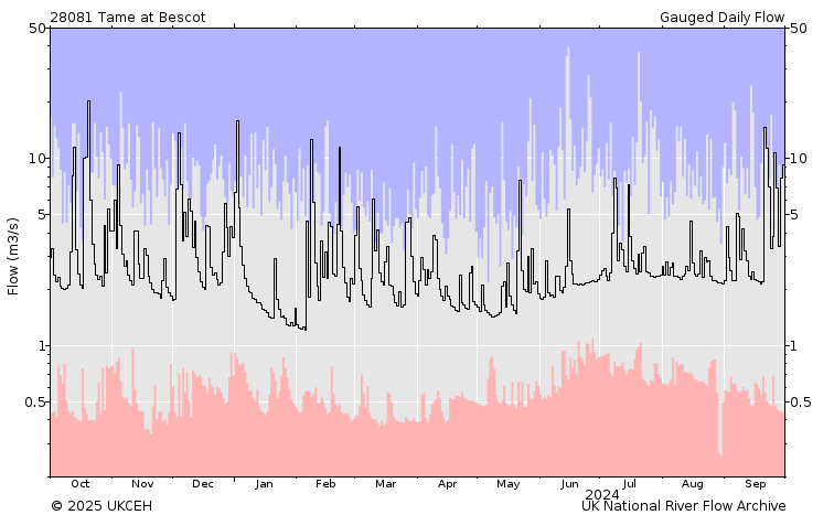 It’s better to focus on the flatness of the Perry in comparison with the Reabrook, because urbanisation is by far the leading factor in determining the Tame’s flashy hydrograph.