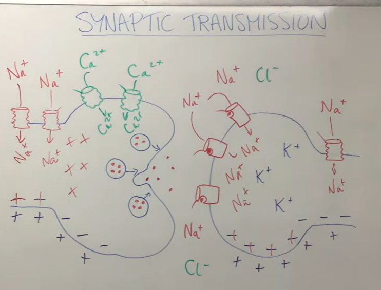 calcium stimulates the synaptic vesicles(plasma membranes which hold neurotransmitters inside)