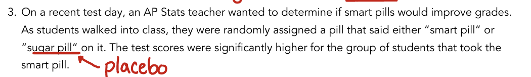 Placebo - fake treatment given to compare effects