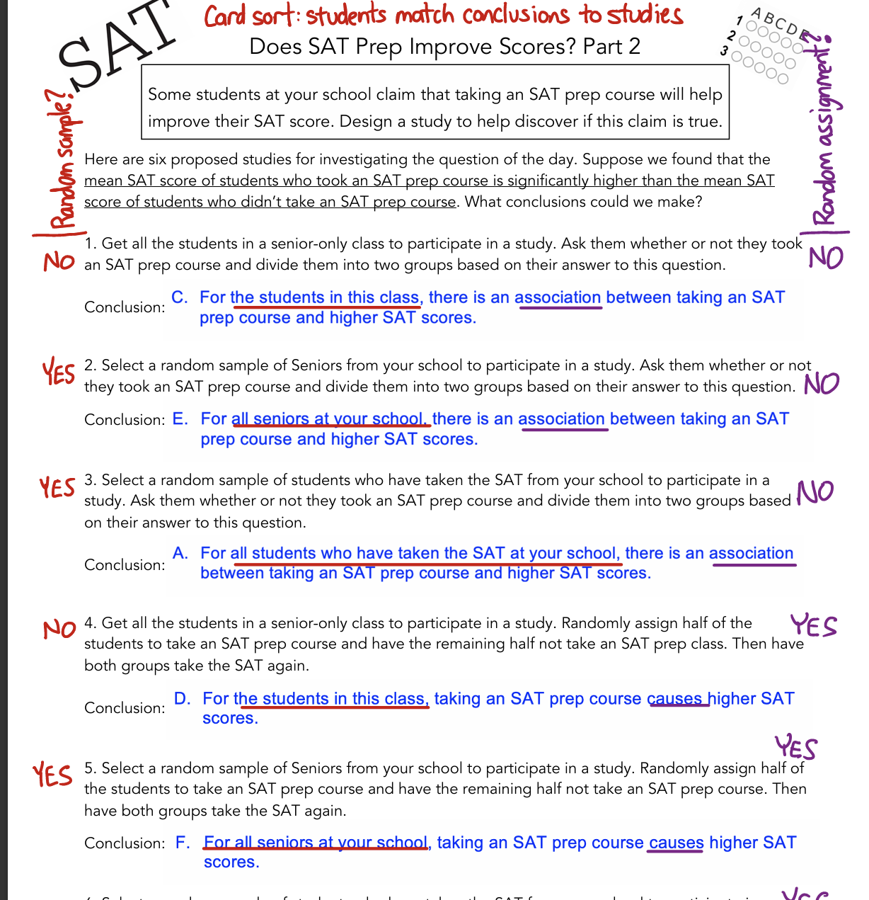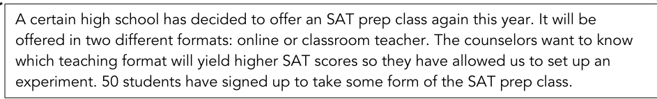 Example - Does SAT prep (class) improve SAT scores?