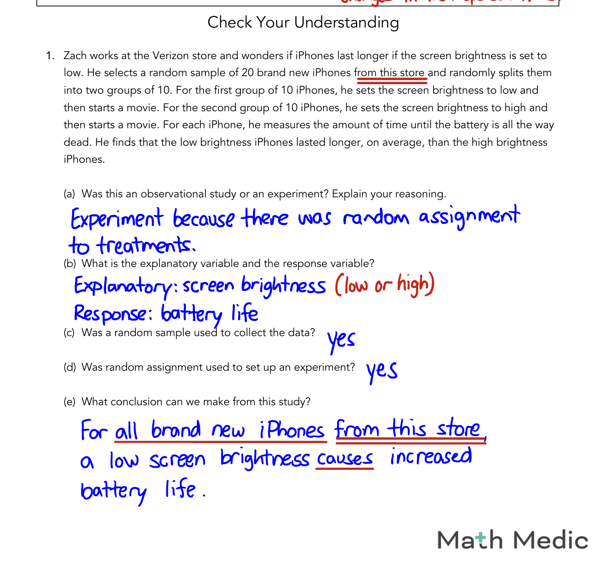 Random Assignment | People randomly put into groups → allows cause & effect |