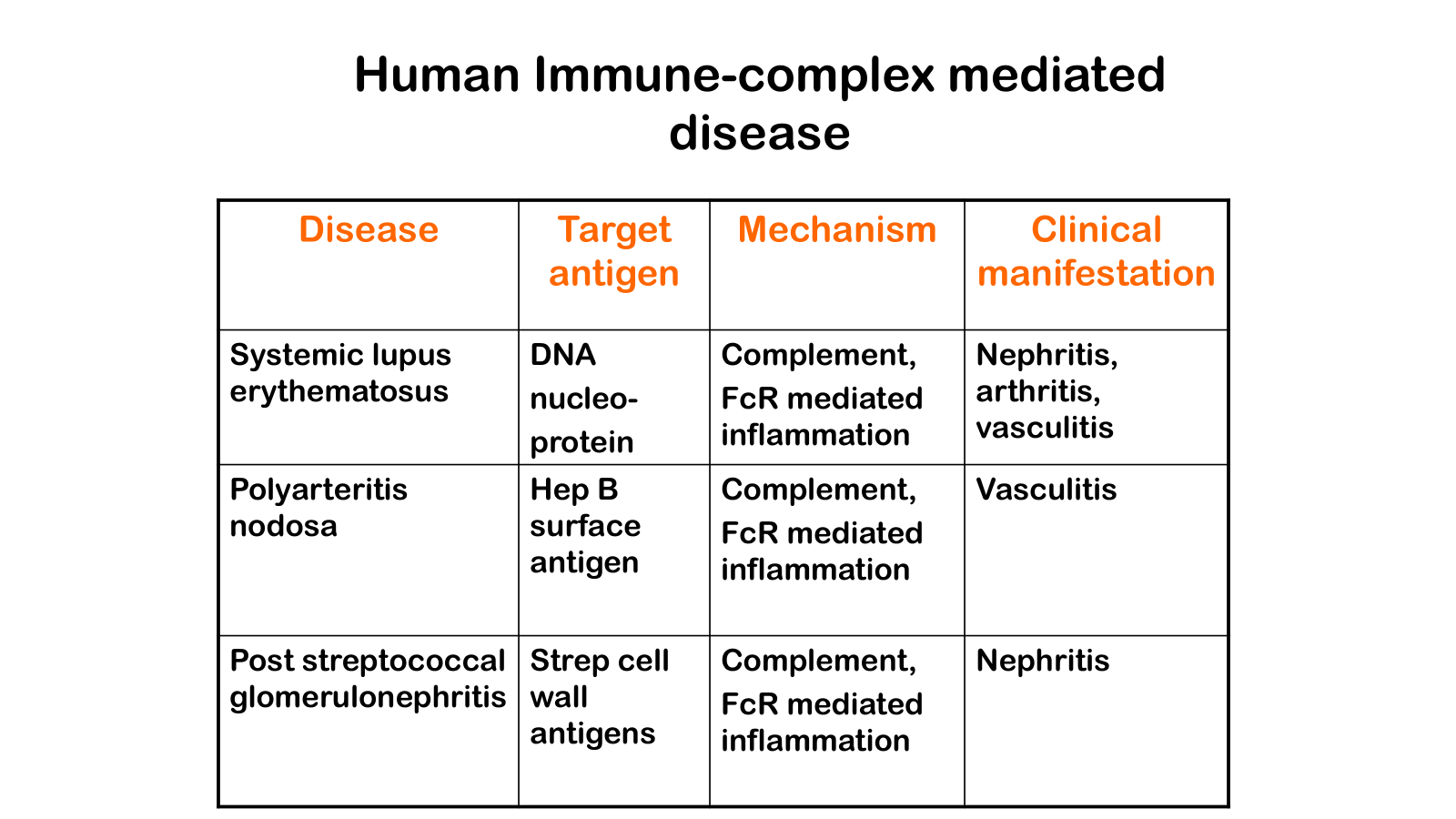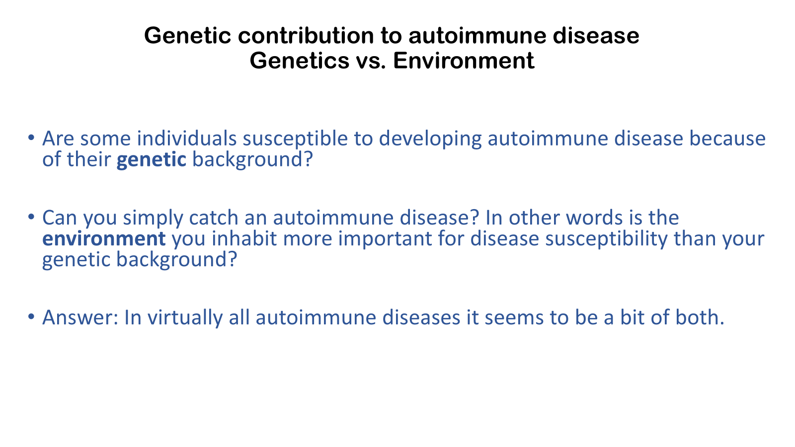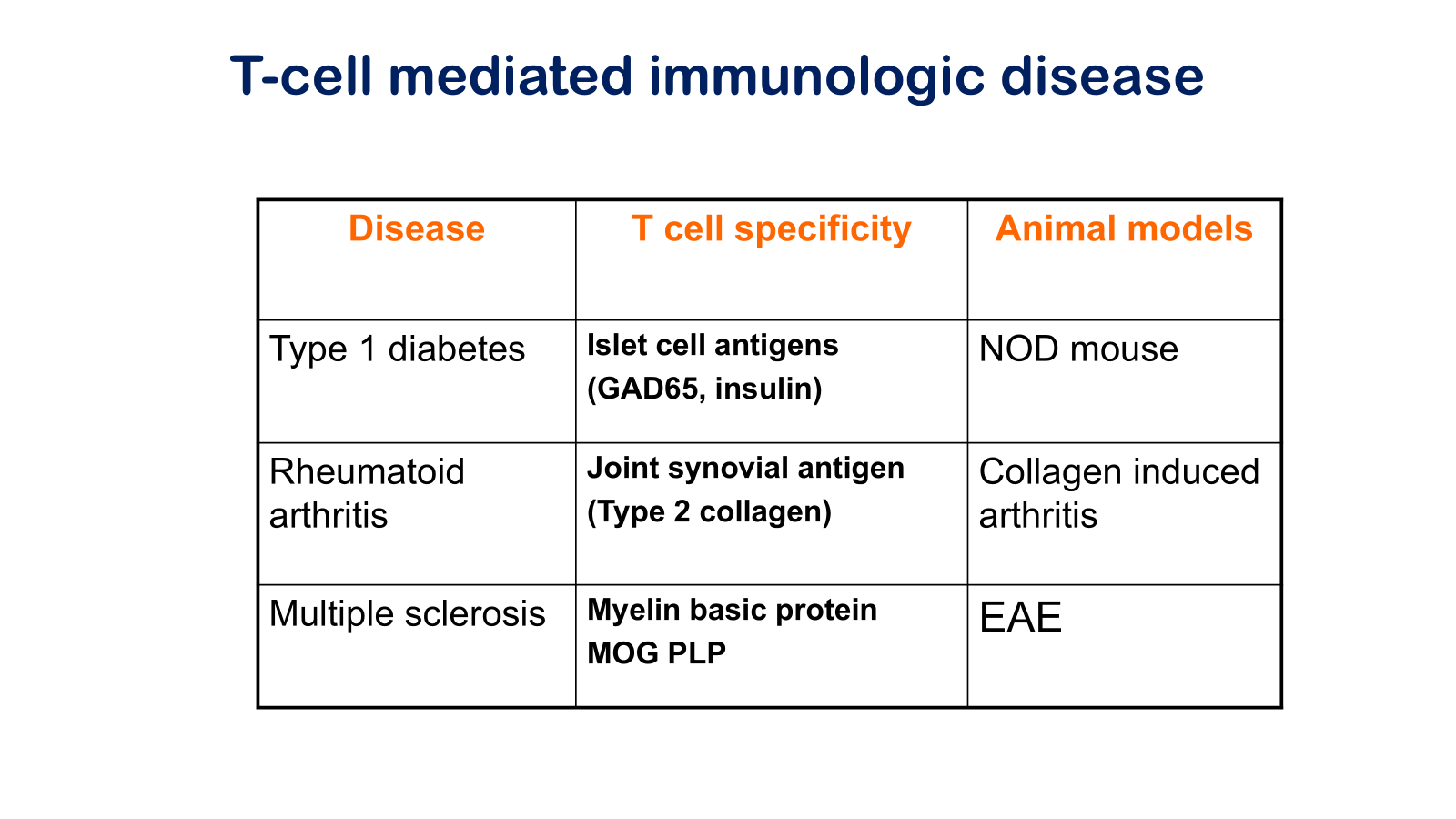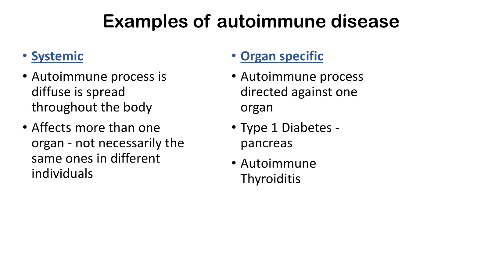 • Contrast systemic and organ specific autoimmune disease
