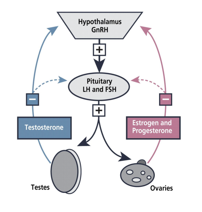 - LH and FSH drop