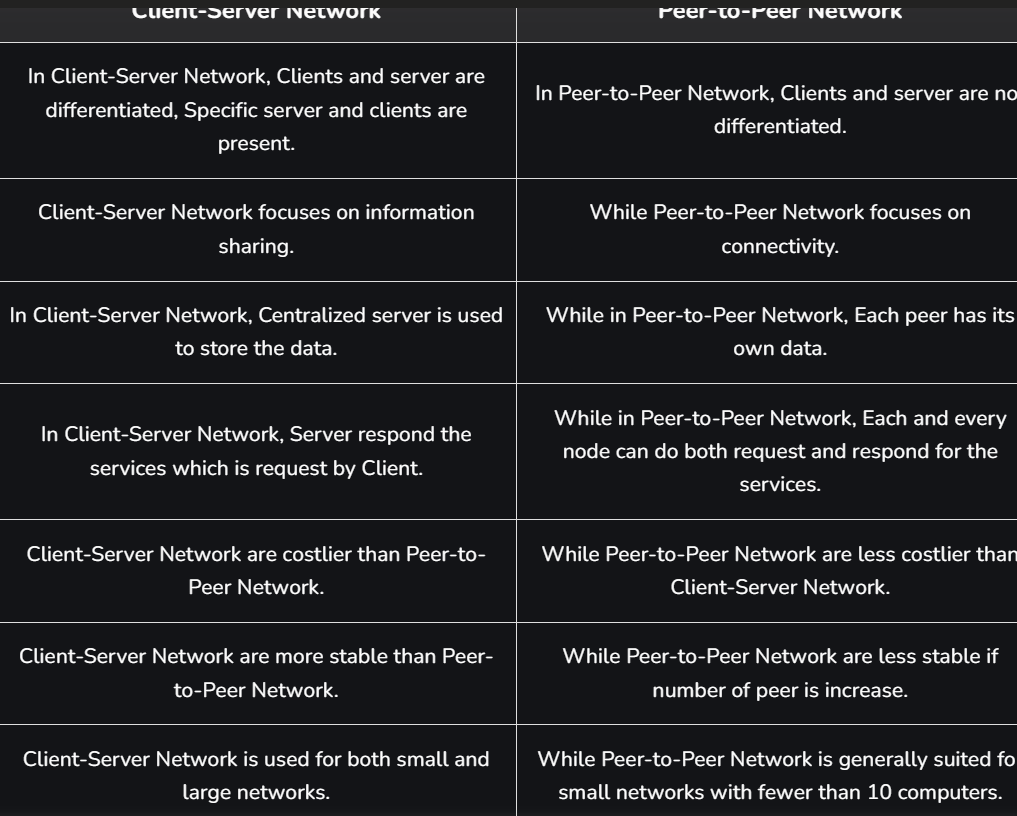 Hybrid P2P Networks: It combines the features of both P2P networks and client-server architecture. An example of such a network is to find a node using the central server.