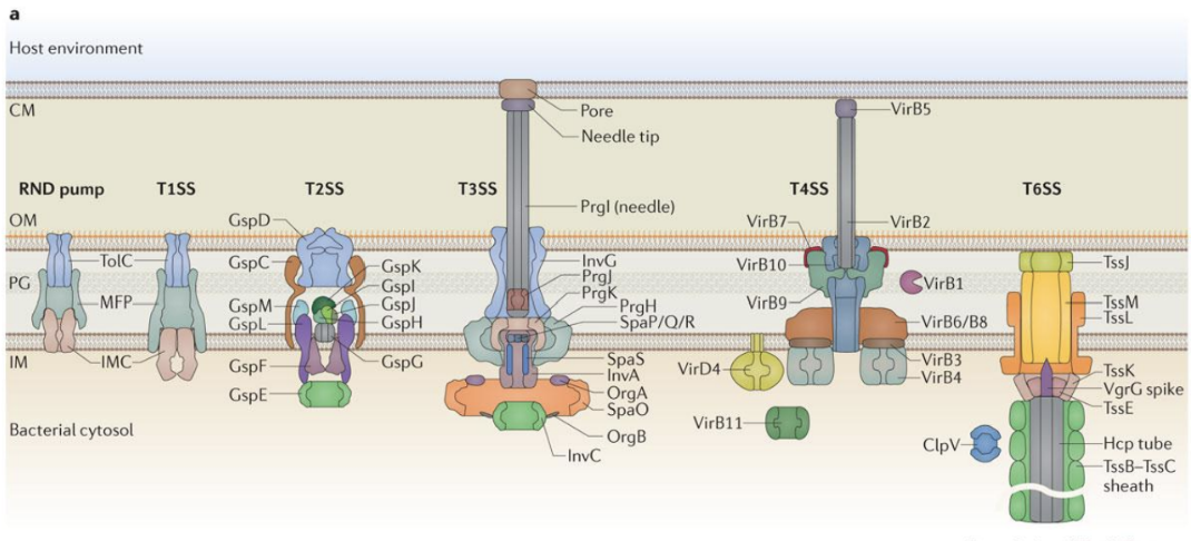 Involves: T1SS, T3SS, T4SS