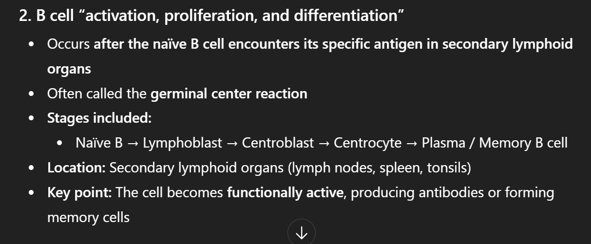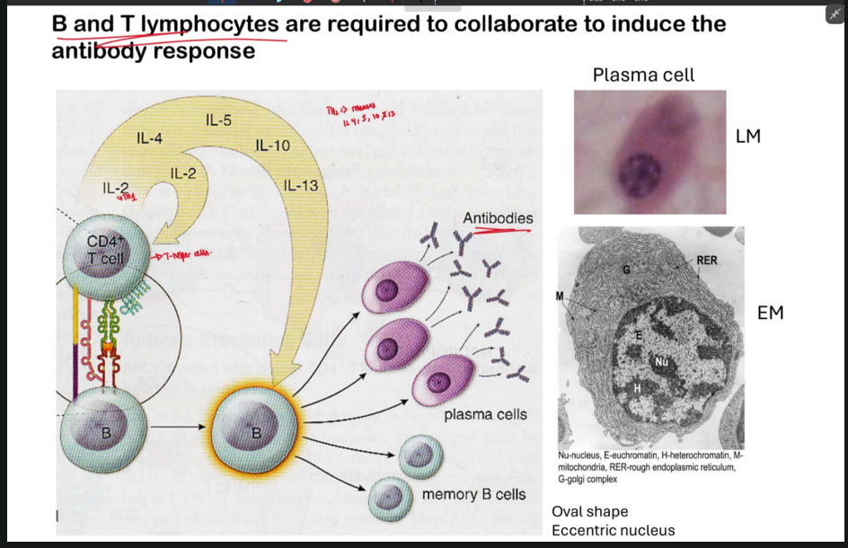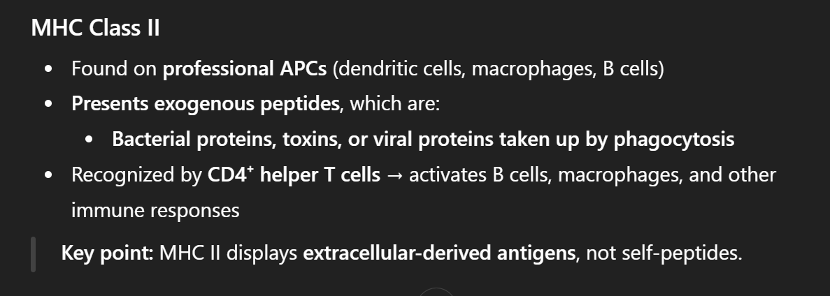 Antigen is presented on their MHC II to CD4⁺ T helper cells