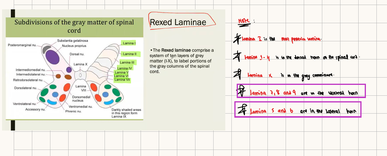 Lamina 7 = contains Renshaw inhibitory interneuron cells.