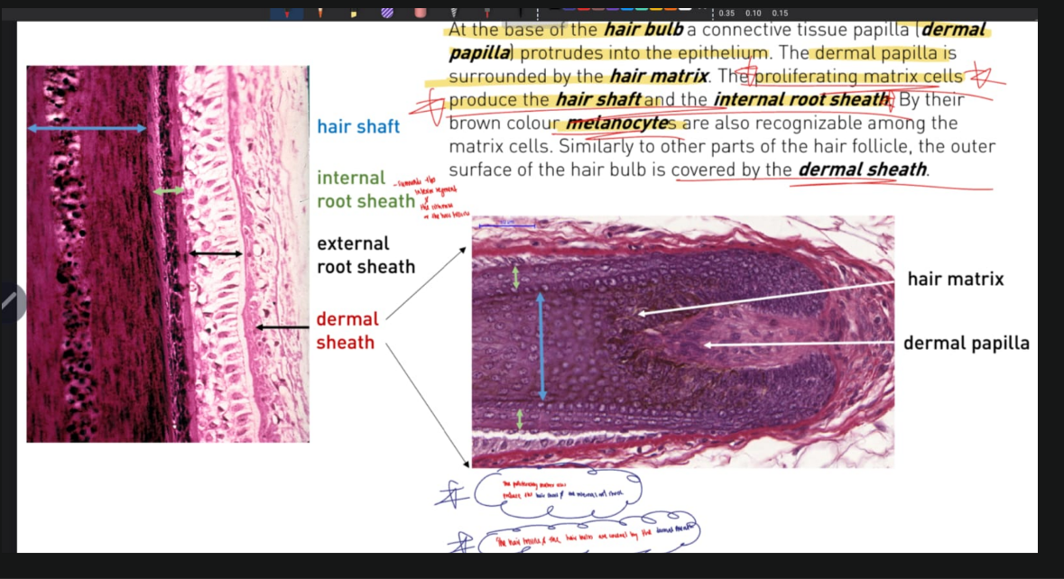 TAKE NOTES: The matrix cells are highly proliferating cells that produce the hair shaft and the internal root sheath