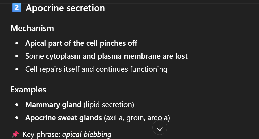 Myoepithelial cells → only in acini (secretory portion), not in ducts.