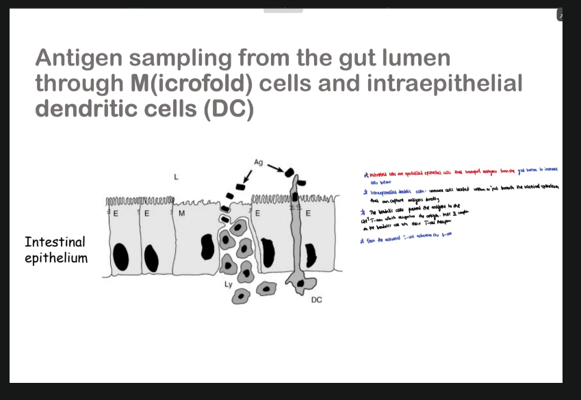 Antigens are passed to dendritic cells/macrophages in Peyer’s patches