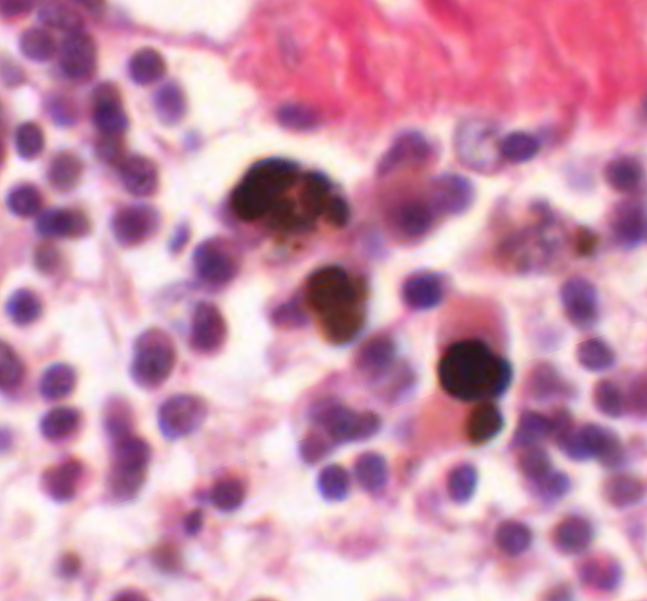 TAKE NOTE: The macrophages in the splenic cords are brown because of the iron compounds produced during degradation of phagocytosed red blood cells.