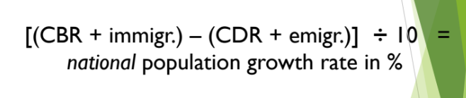 Population Growth Rate Calculation- (CBR - CDR) / 10